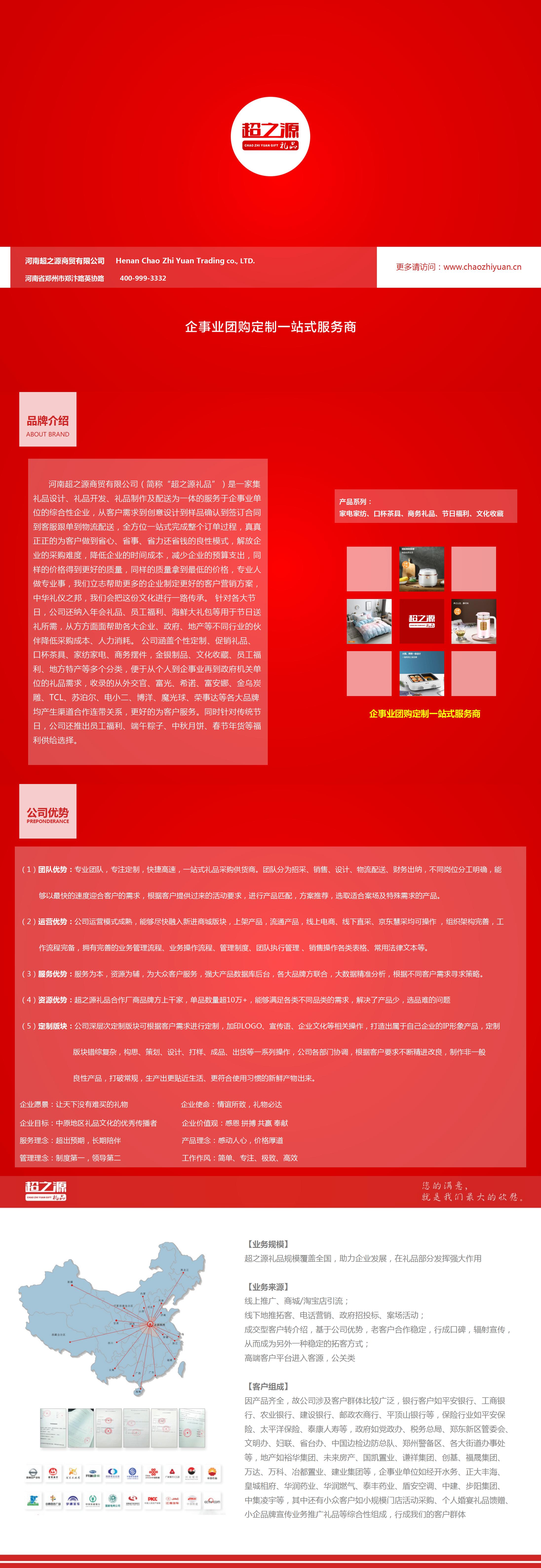 河南超之源商貿(mào)有限公司是一家集策劃、設(shè)計(jì)、開(kāi)發(fā)、銷售、服務(wù)為一體的專業(yè)性禮品公司。